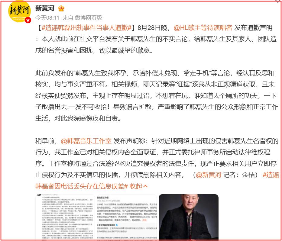 很多网友看到这里,觉得事情可能会随着对方的一直道歉而结束。有网友甚至表示,如果这都行,那么,韩磊老师也太仁慈了,造谣的成本也太低了。